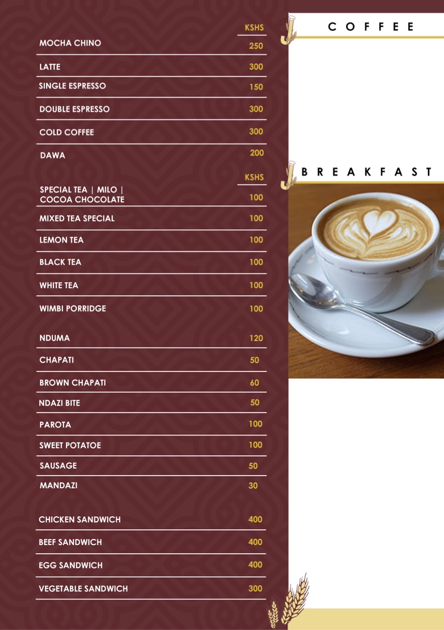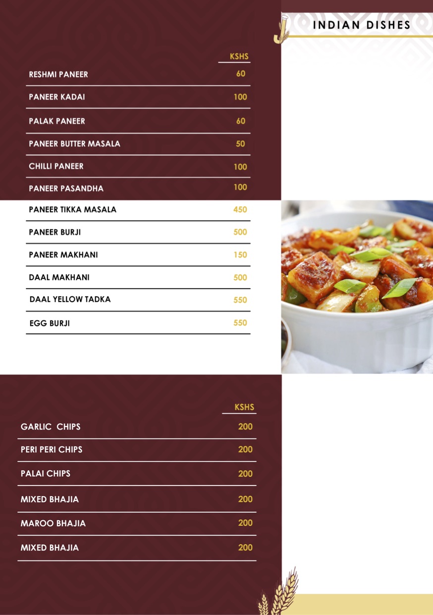 Jadelica Hotel Menu